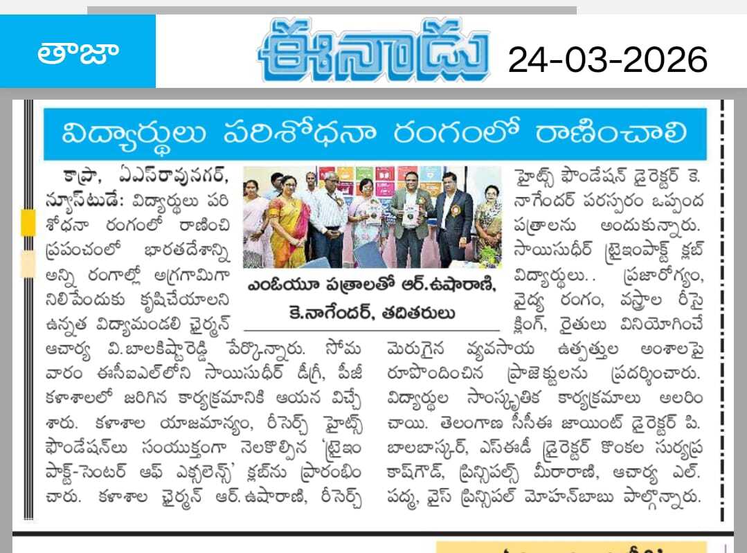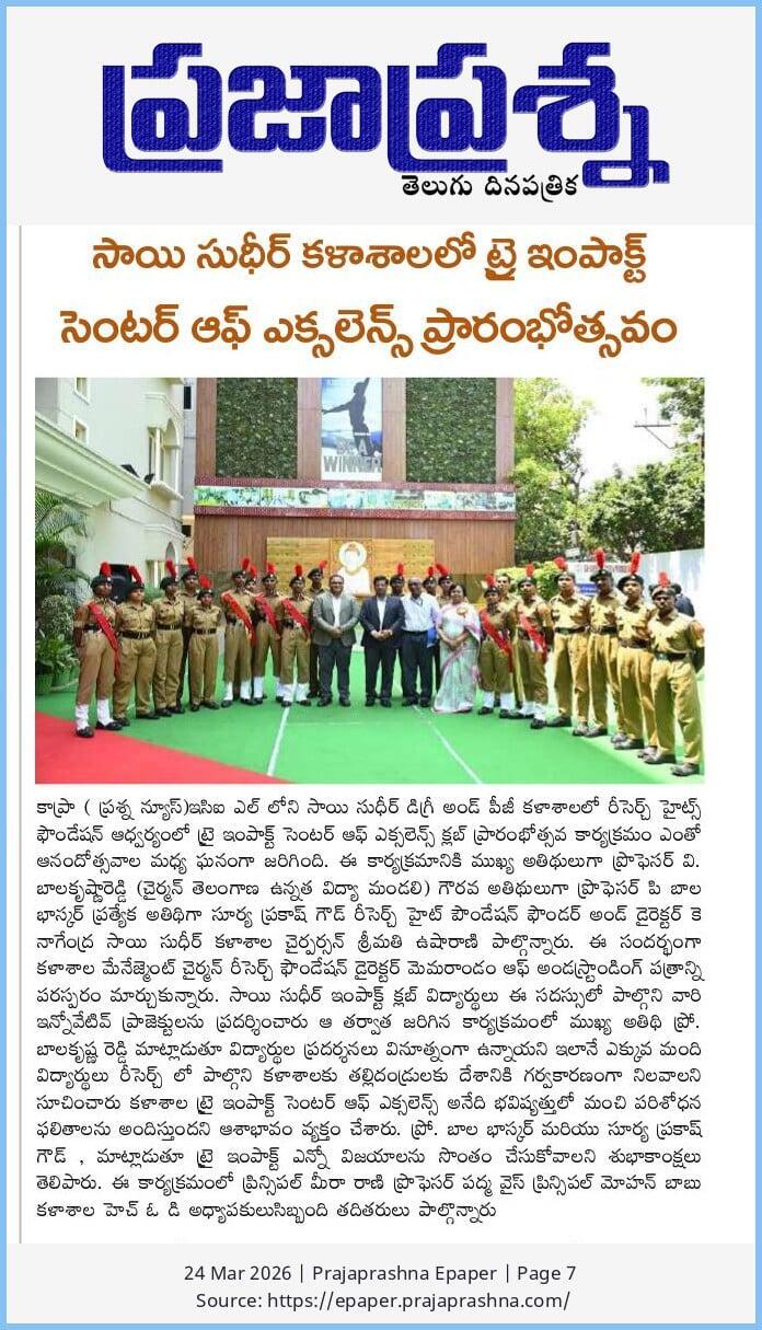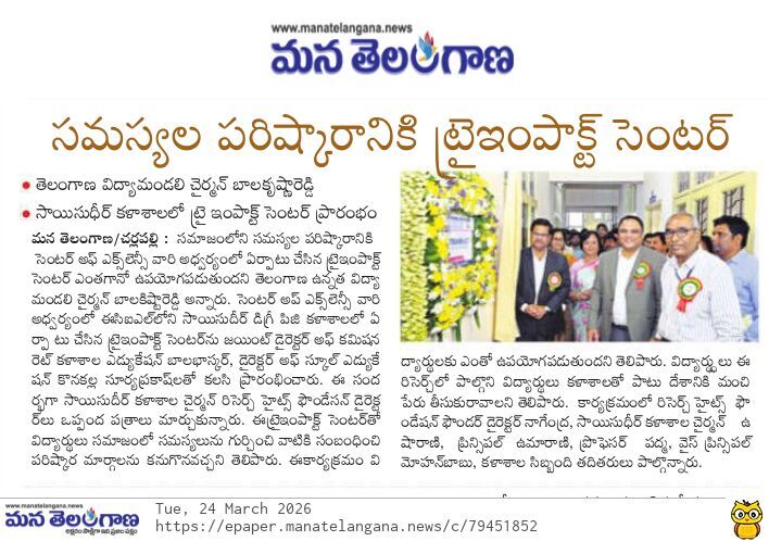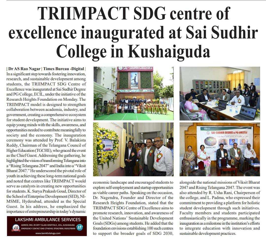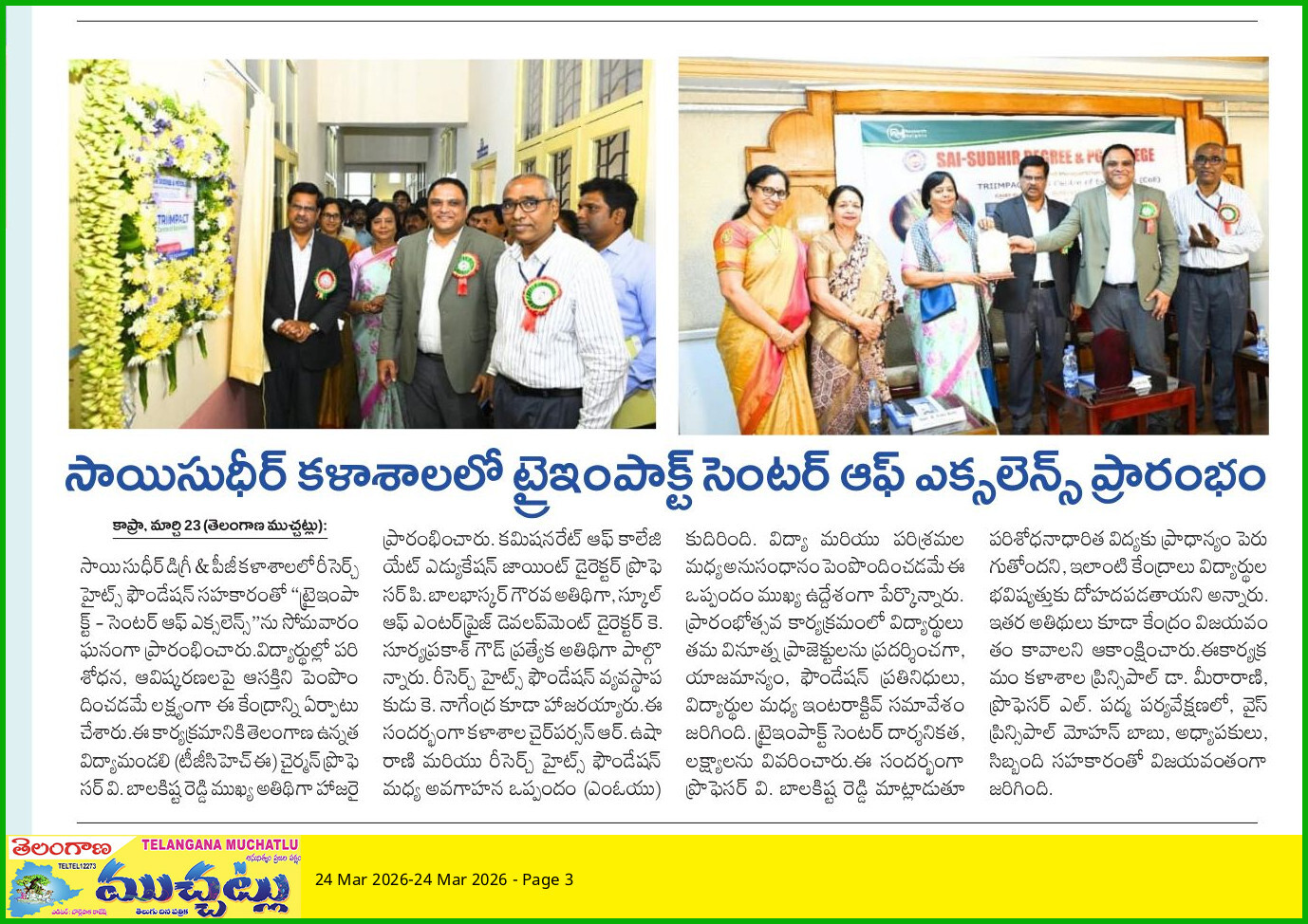 TRIIMPACT Centre of Excellence Inauguration at Sai Sudhir Degree & PG College, Hyderabad