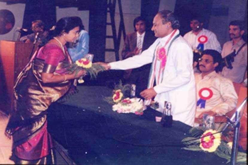 Receiving a memento of appreciation from Sri. Nara Chandra Babu Naidu- (Ex-CM of Andhra Pradesh). She is very much interested in creation of Swarna Andhra Pradesh and Vision 2020 envisaged by the Govt. of Andhra Pradesh and participated in all the Clean and Green and other Janma Bhoomi Programmes besides encouraging all the students and staff-members to take part in every social service activity for the welfare of the students of all sections of the society in general. Every year free education is offered to a few meritorious orphan students (To an orphanage Home at Cherlapally, Hyderabad)
